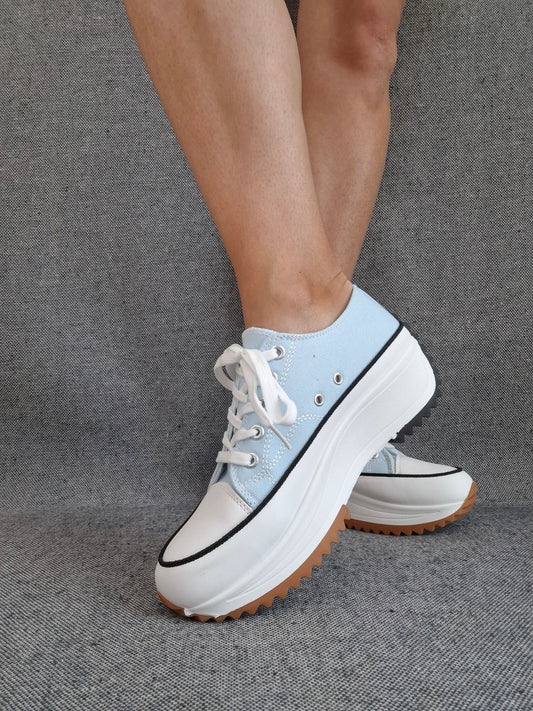 Chaussures baskets basses plate-forme tissu toile vert d'eau