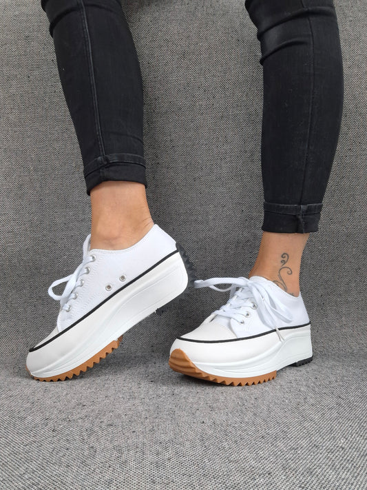 Chaussures baskets basses semelle compensée en tissu blanc style converse