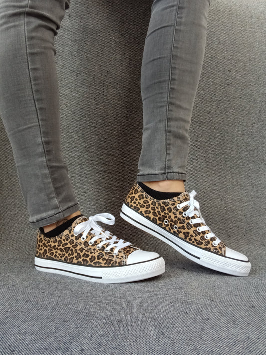 Chaussures baskets basses tissu léopard style converse