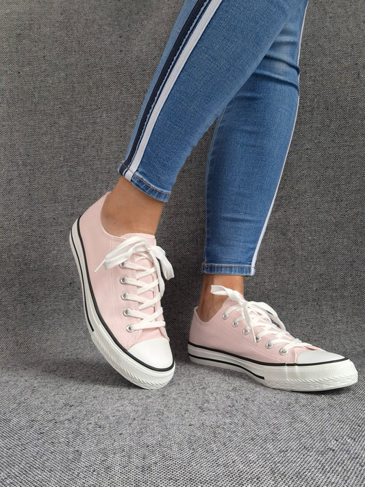 Chaussures baskets basses tissu toile rose pale style converse