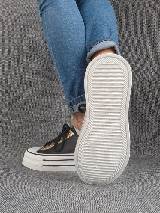 Chaussures baskets basses semelle compensée simili noir style converse