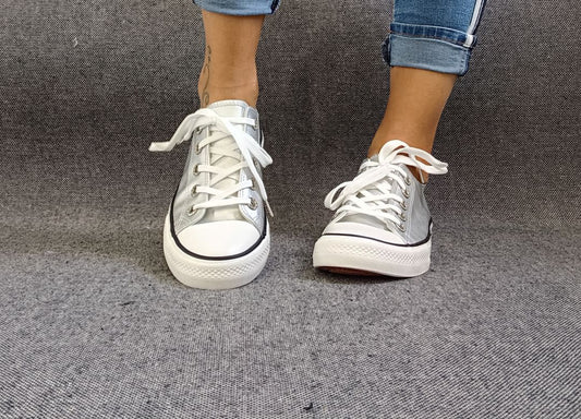 Chaussures baskets basses silver argenté métallisées type converse