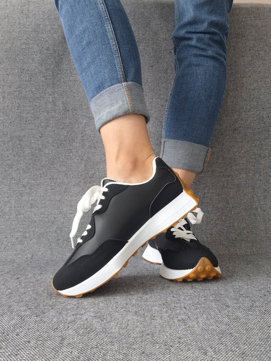 Chaussures baskets en toile tissu noir semelle épaisse style converse