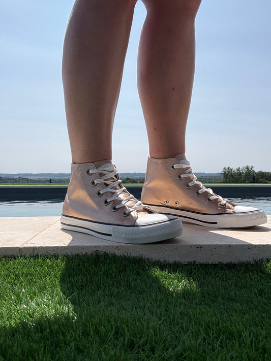 Chaussures baskets hautes cuivre champagne et blanche style converse