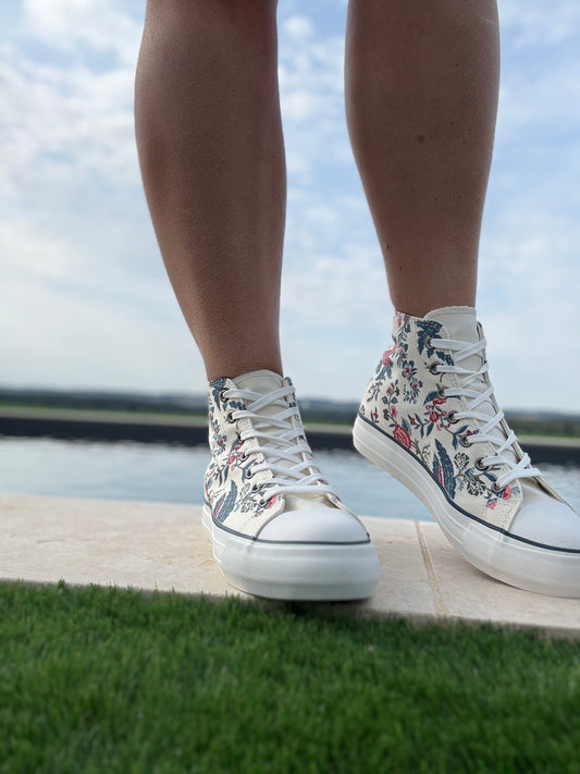 Chaussures baskets hautes en toile motif liberty floral style converse