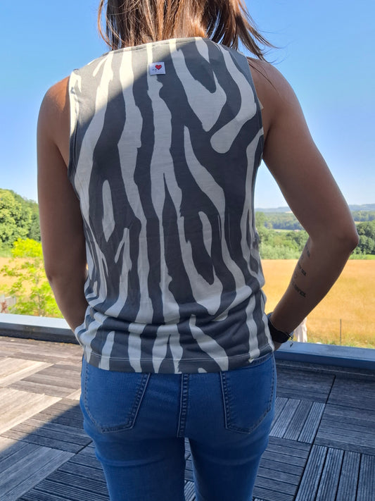 Débardeur motif « zèbre » upcyclé en coton/lin