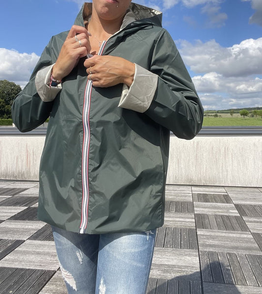Laura Jo - Imperméable réversible court garnissage ouate mi-saison vert forêt / doré