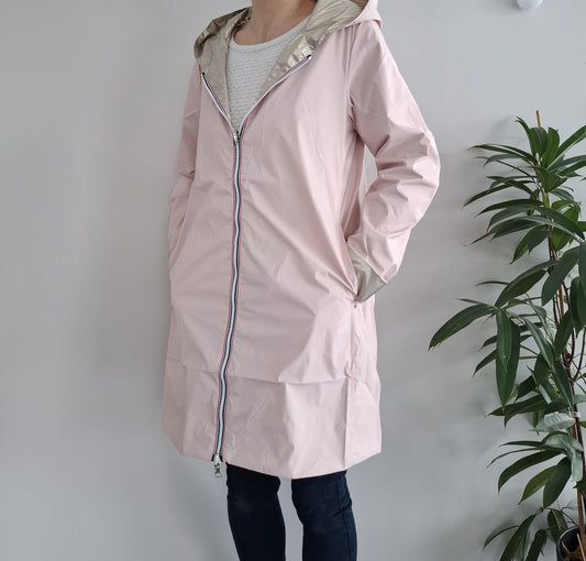 Laura Jo - Imperméable réversible long sans garnissage ouate couleur rose nude/doré