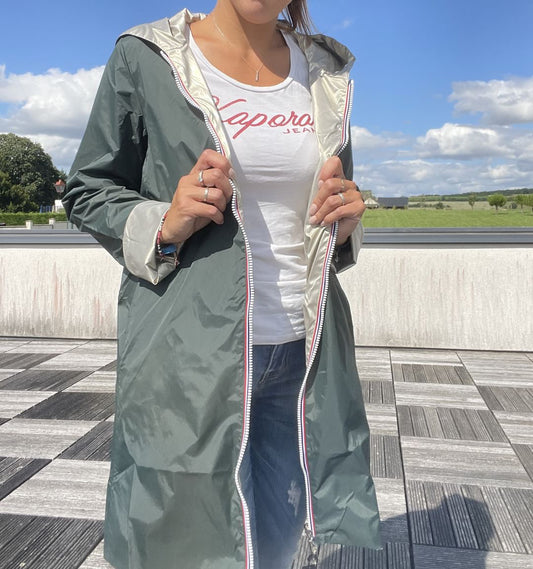 Laura Jo - Imperméable réversible long sans garnissage ouate couleur vert forêt/doré