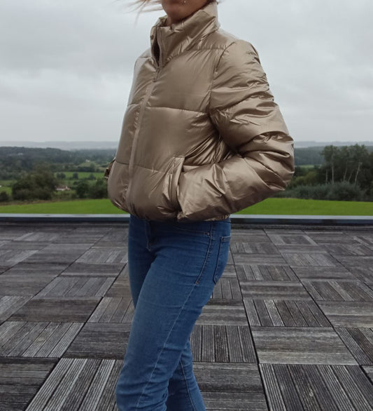Melya Melody - Manteau court imperméable matelassé bronze brillant