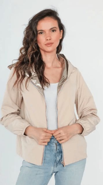 Melya Melody - Manteau court léger imperméable kaki réversible doré