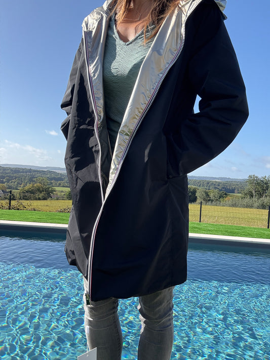 Melya Melody - Manteau léger long réversible imperméable noir doré