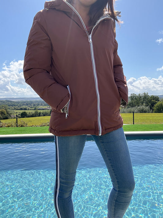 Melya Melody - Manteau court réversible et imperméable matelassé marron chocolat/doré