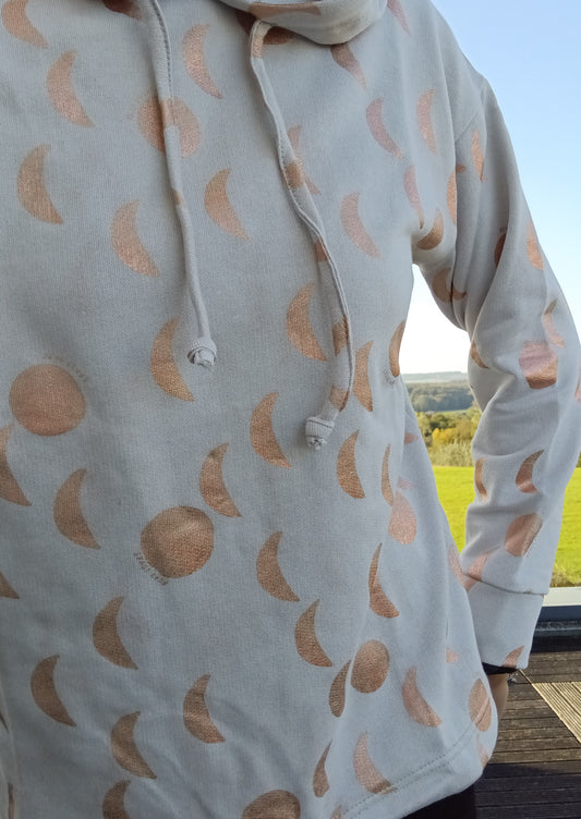 Sweat à capuche et à cordon blanc crème motifs lune doré rosé