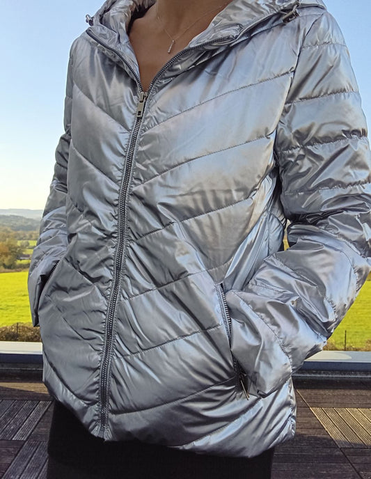 Veste courte matelassée doublée argenté