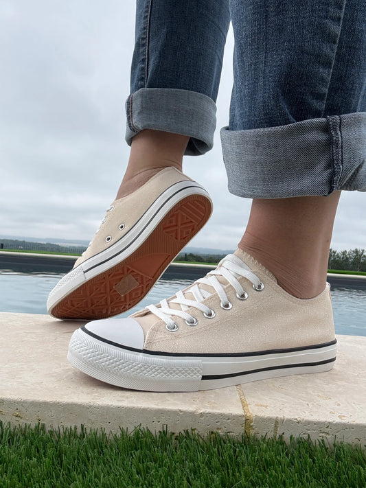 Chaussures baskets basses effet pailleté glitter doré style converse
