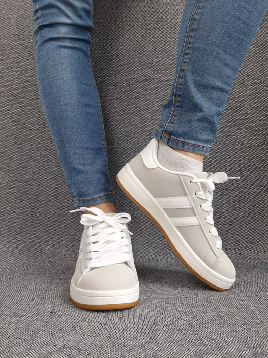 Chaussures baskets basses grises à rayures blanches style sneakers
