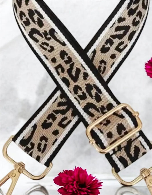Bandoulière sangle large léopard beige noir mousquetons dorés