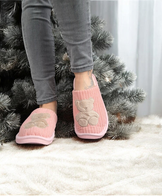 Chaussons fourrés rouge et blanc en tissu à carreaux avec noeud