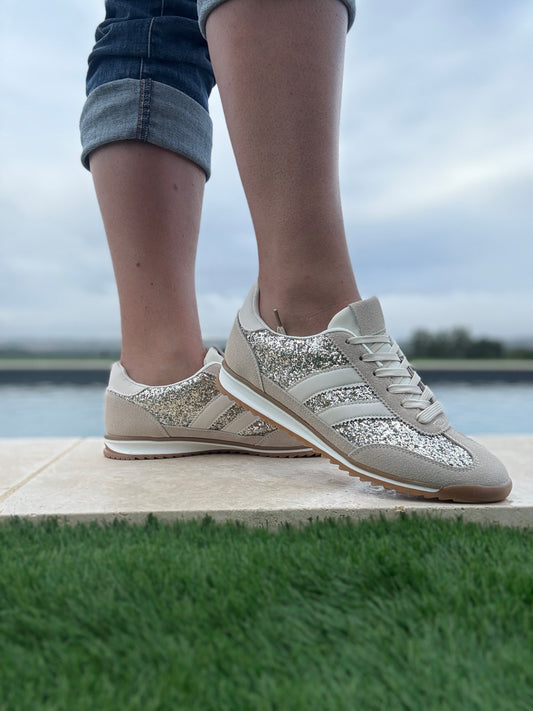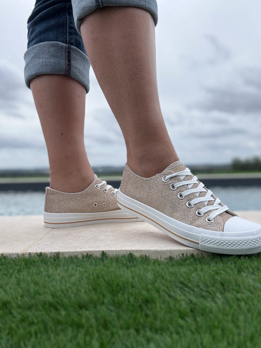 Chaussures baskets basses effet pailleté glitter doré style converse