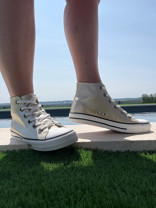 Chaussures baskets hautes dorées et blanc type converse