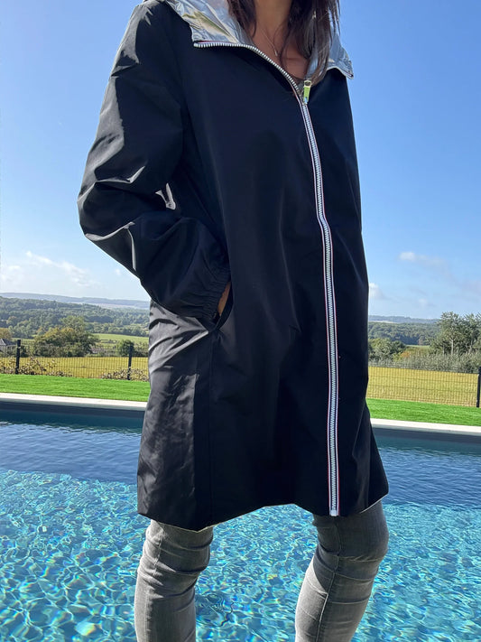 Manteau long réversible impérméable femme noir & doré – Melya Melody | Le Petit Placard