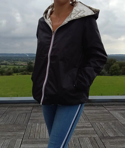 Best Seller -26%Imperméable Réversible Court Noir Doré Femme Laura Jo Mi-Saison