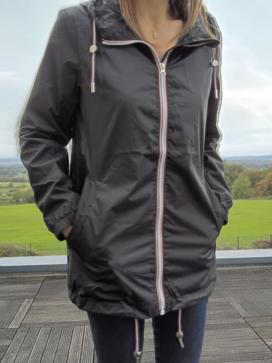Melya Melody - Manteau mi long sous les fesses léger imperméable sans doublure noir
