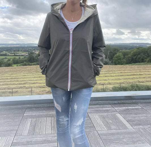 Imperméable Réversible Court Kaki/Doré – Veste Légère Mi-Saison Laura Jo