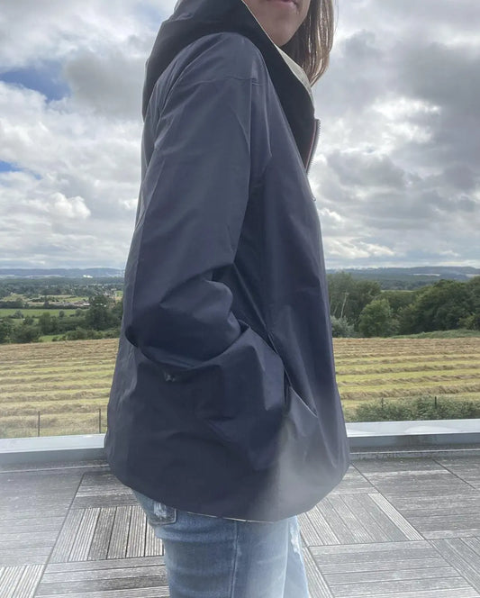 Imperméable Réversible Court Laura Jo – Bleu Marine & Doré | Mi-Saison Léger
