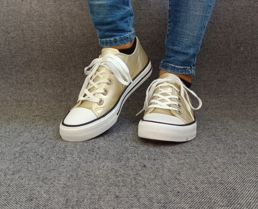 Baskets Basses Doré Métallisées Femme - Style Converse Gold