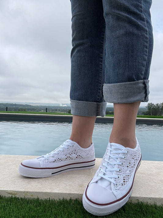 Baskets Blanches Dentelle Femme - Chaussures Printemps Style Converse