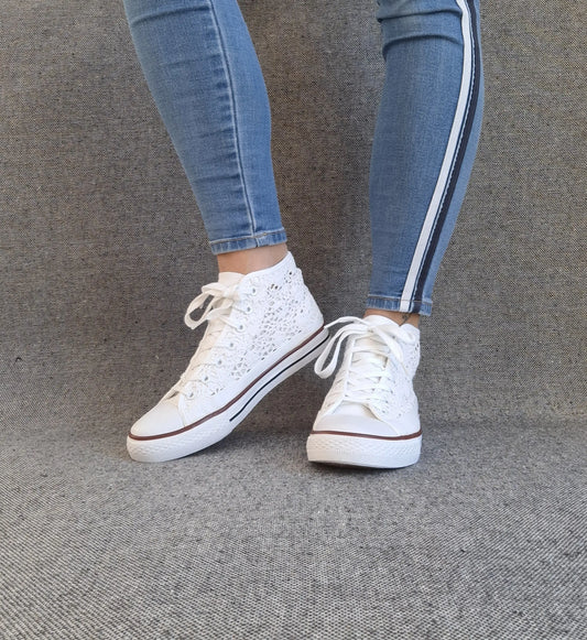 Baskets Hautes Dentelle Blanche Femme - Montantes Style Converse