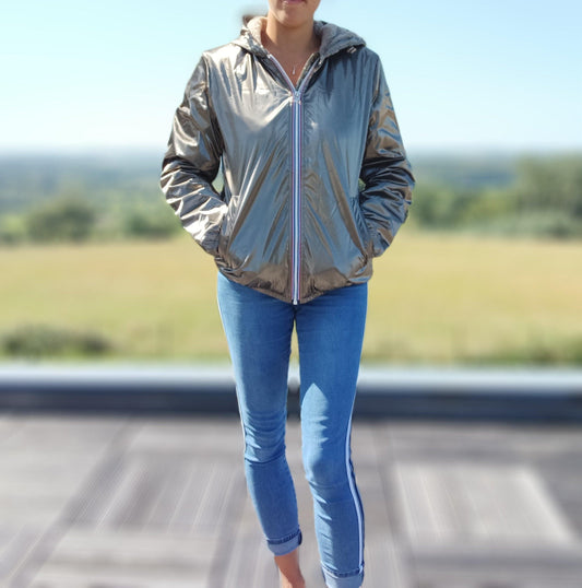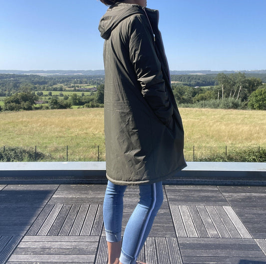 Laura Jo - Imperméable réversible court sans garnissage ouate mi-saison couleur kaki/doré