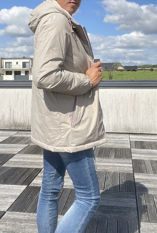 Laura Jo - Imperméable mi long fourré en fausse fourrure cordon tricolore couleur beige