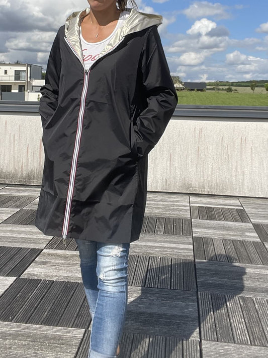 Laura Jo - Imperméable réversible long sans garnissage ouate couleur noir/doré