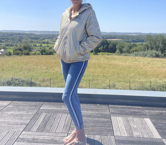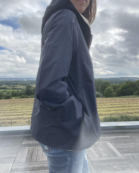 Laura Jo - Imperméable réversible court sans garnissage ouate mi-saison couleur bleu marine/doré