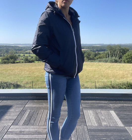 Laura Jo - Manteau court imperméable fourré couleur bleu marine