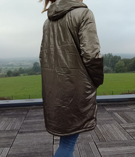 Laura Jo - Parka réversible court avec garnissage ouate couleur kaki/kaki brillant zip uni
