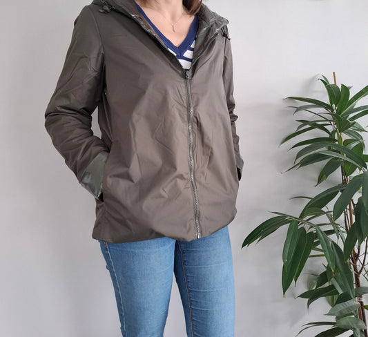 Laura Jo - Parka réversible court avec garnissage ouate couleur kaki/kaki brillant zip uni