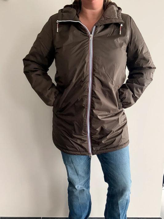 Attrait Paris - Manteau mi-long imperméable fourré resserrable à la taille kaki brillant