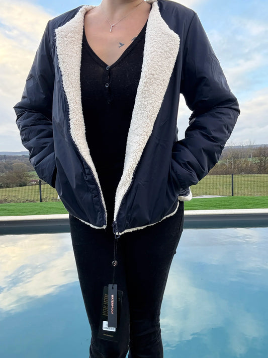Laura Jo - Veste courte reversible bleu marine avec doublure en sherpa beige