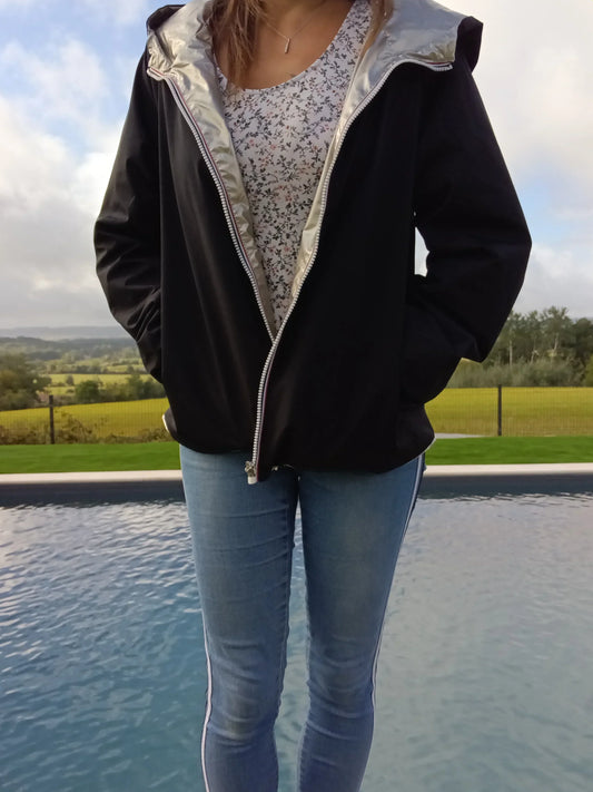 Melya Melody - Manteau court léger imperméable noir réversible doré