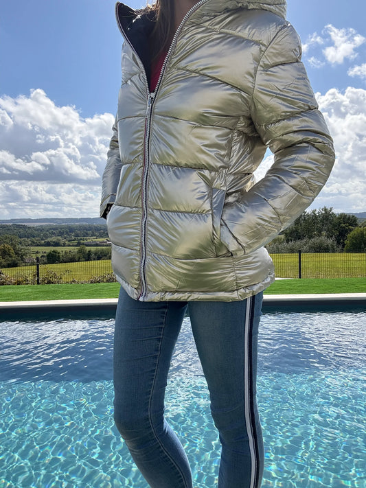 Melya Melody - Manteau court réversible et imperméable matelassé bleu marine/doré