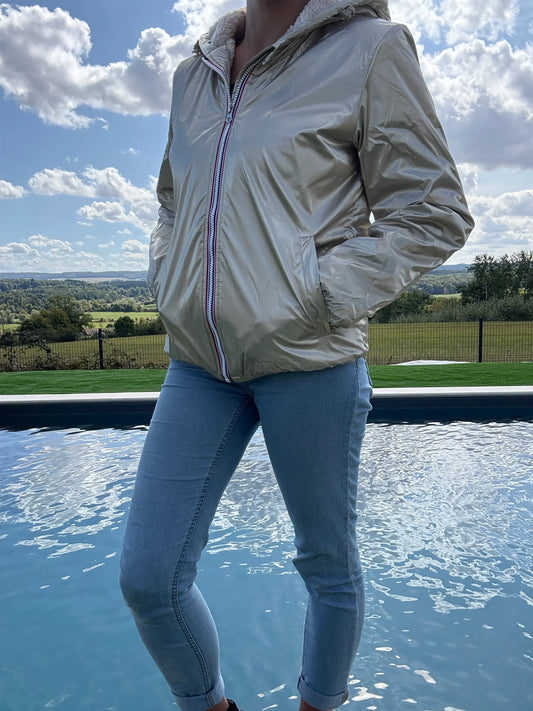 Laura Jo - Imperméable réversible court sans garnissage ouate couleur rose nude/doré