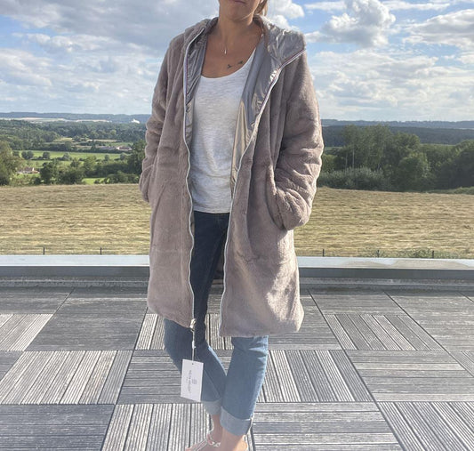 Melya Melody - Manteau long fourré fausse fourrure réversible imperméable bronze - Curvy
