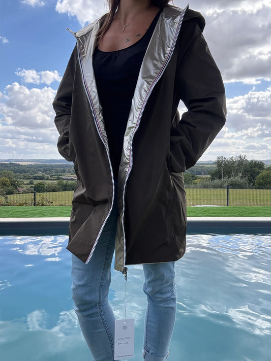 Melya Melody - Manteau léger long réversible imperméable kaki marron doré