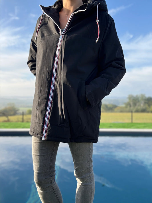 New Lolo - Manteau chaud long hauteur genoux noir fourré complet réversible imperméable