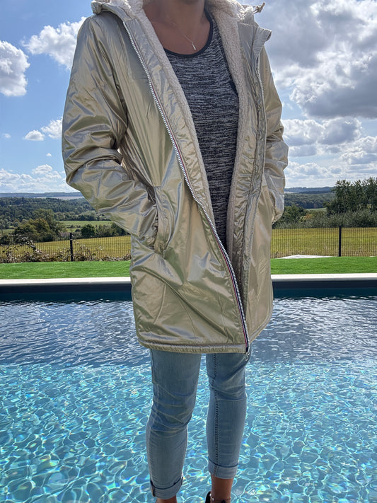 Laura Jo - Imperméable fourré long fausse fourrure doré intérieur sherpa beige
