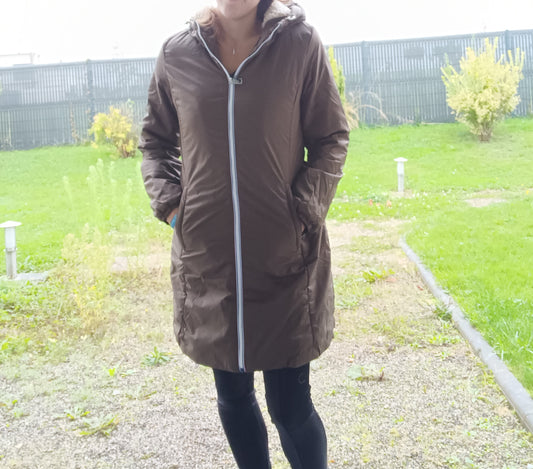 Melya Melody - Manteau long réversible et imperméable matelassé marron/chocolat